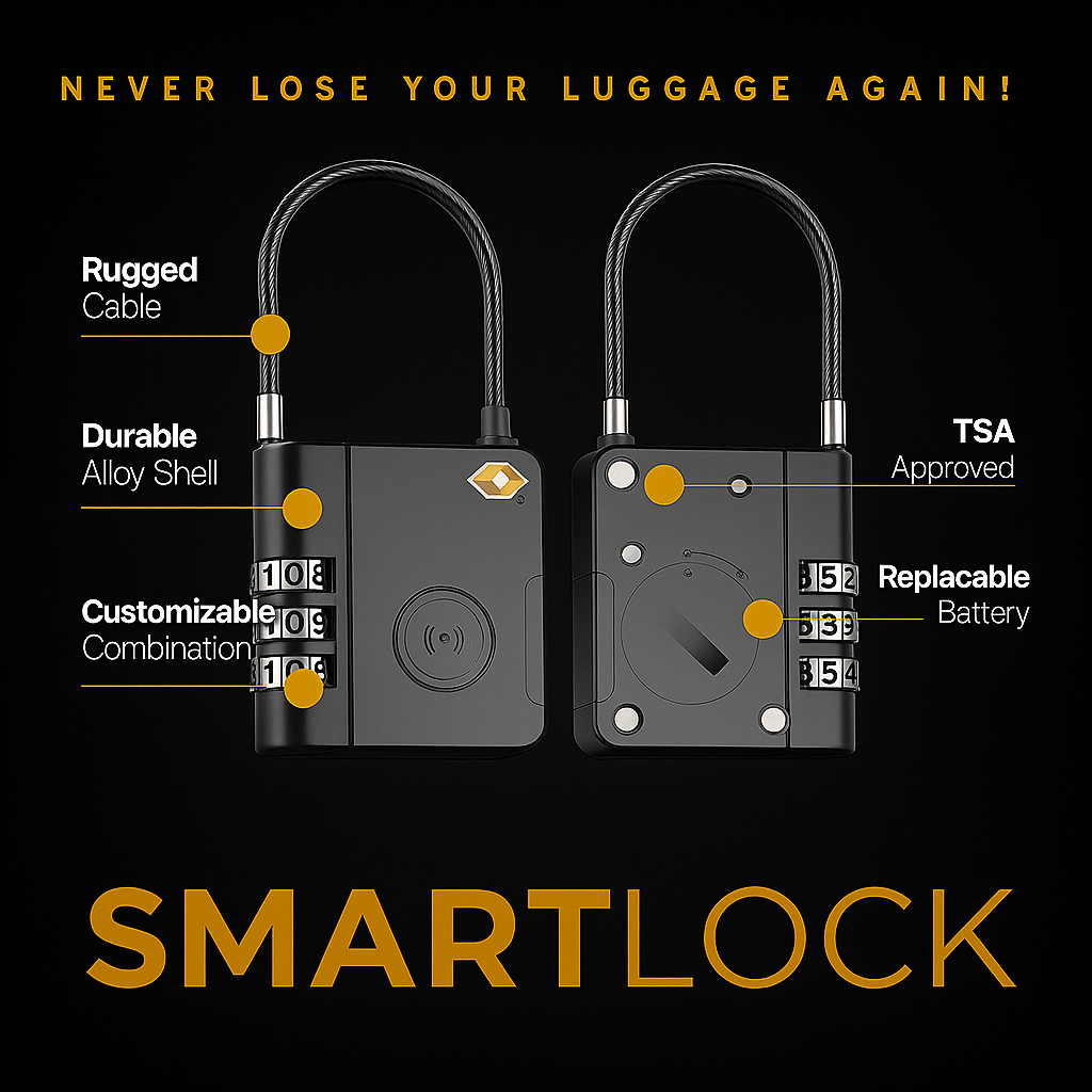 SmartLock goes beyond basic protection — it’s a TSA-approved lock and a smart tracker in one. Built with durable, weather-resistant materials, it safeguards your luggage through turbulence, rain, and rough handling. If someone opens or moves your bag, you’ll know immediately through your phone.